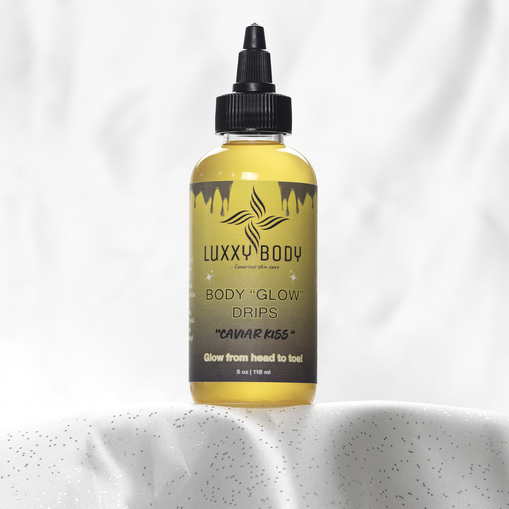 Introducing Caviar Kiss Body Glow Drip, a luxurious body oil that envelops your skin in seductive sophistication and mysterious allure. This spellbinding formula delivers a radiant glow while infusing your skin with a scent comparable to Yves Saint Laurent's Black Opium. Experience a fragrance that's both irresistibly sweet and dangerously seductive, leaving a bewitching impression as precious as caviar itself.
